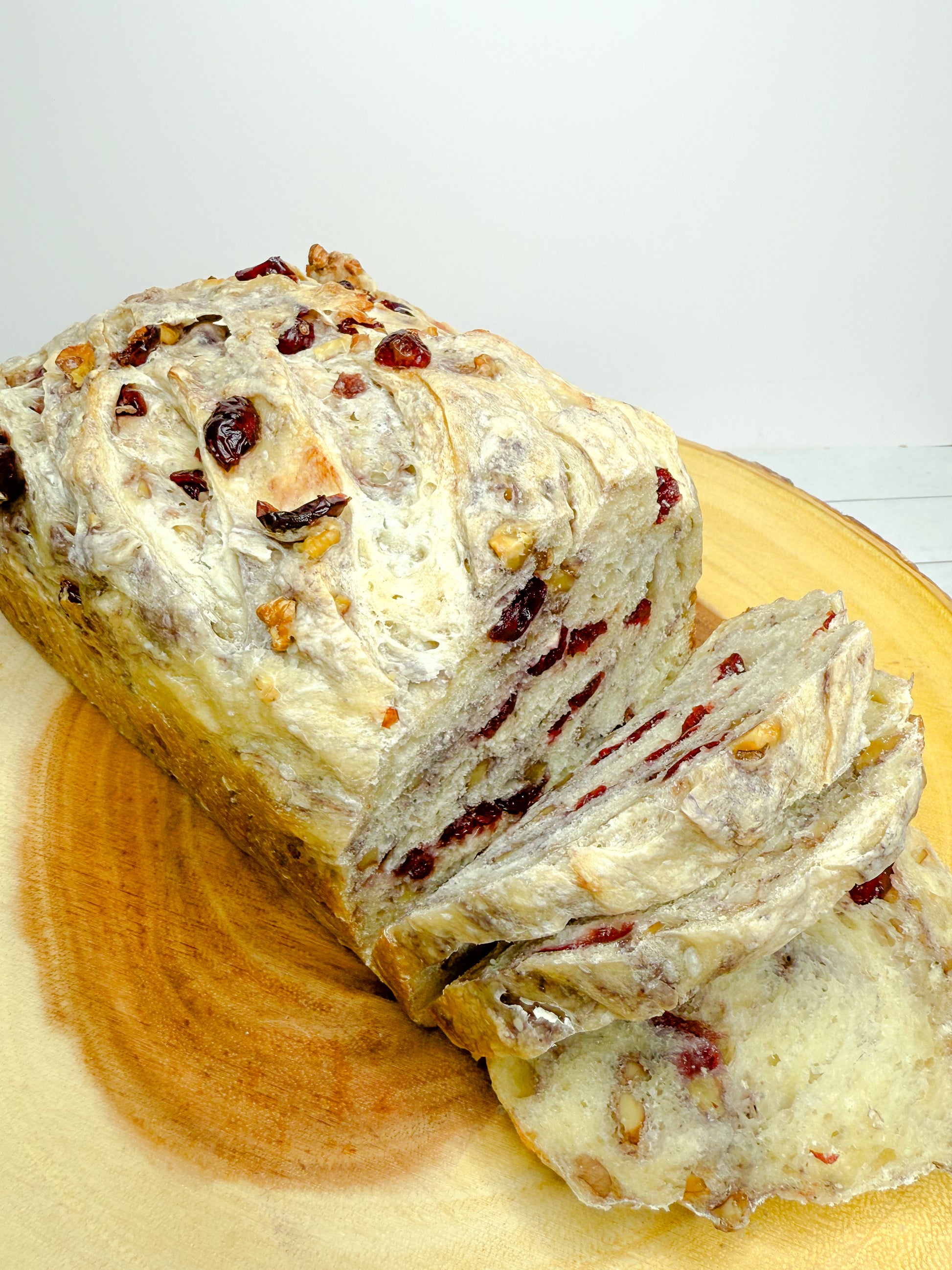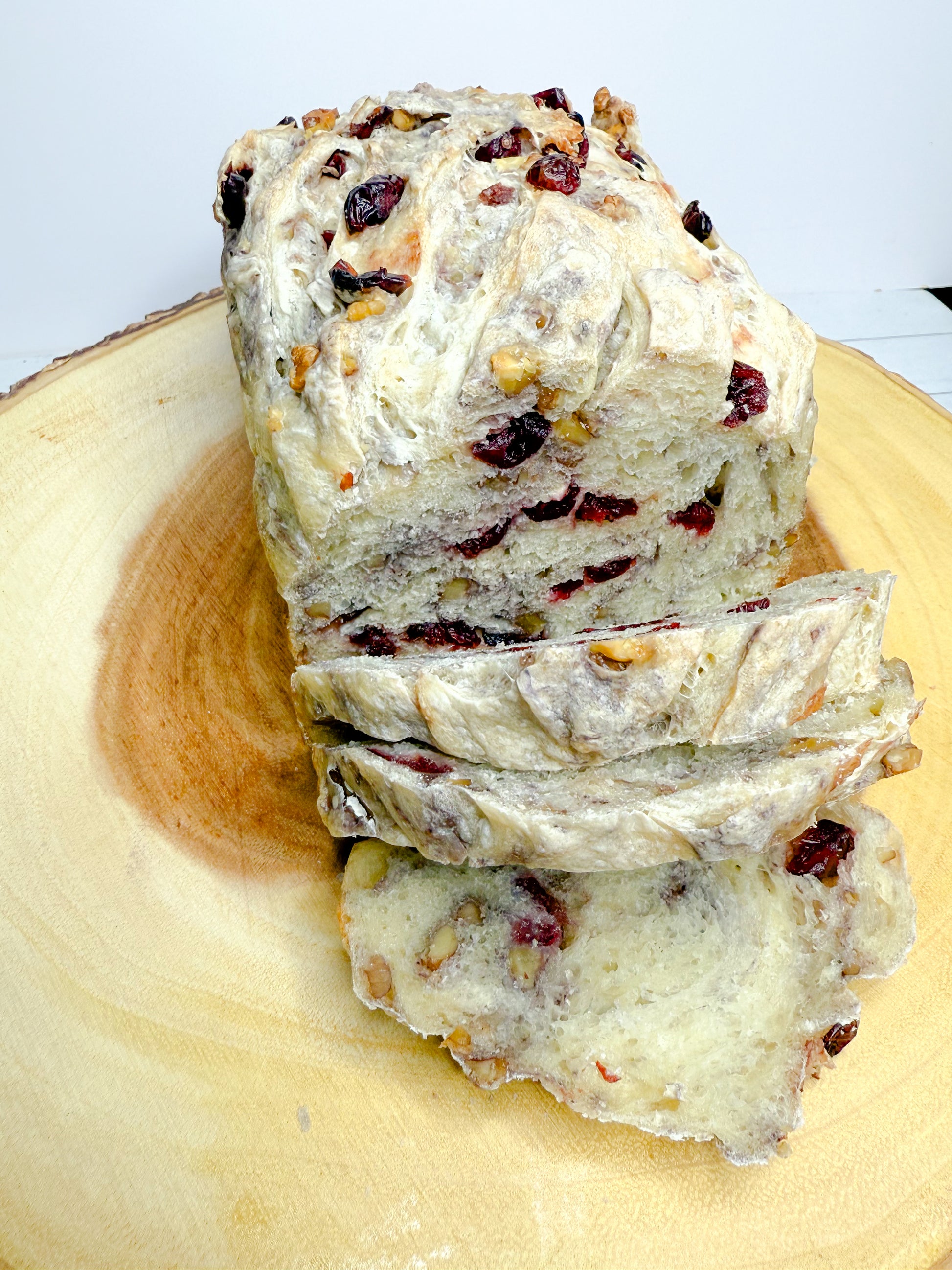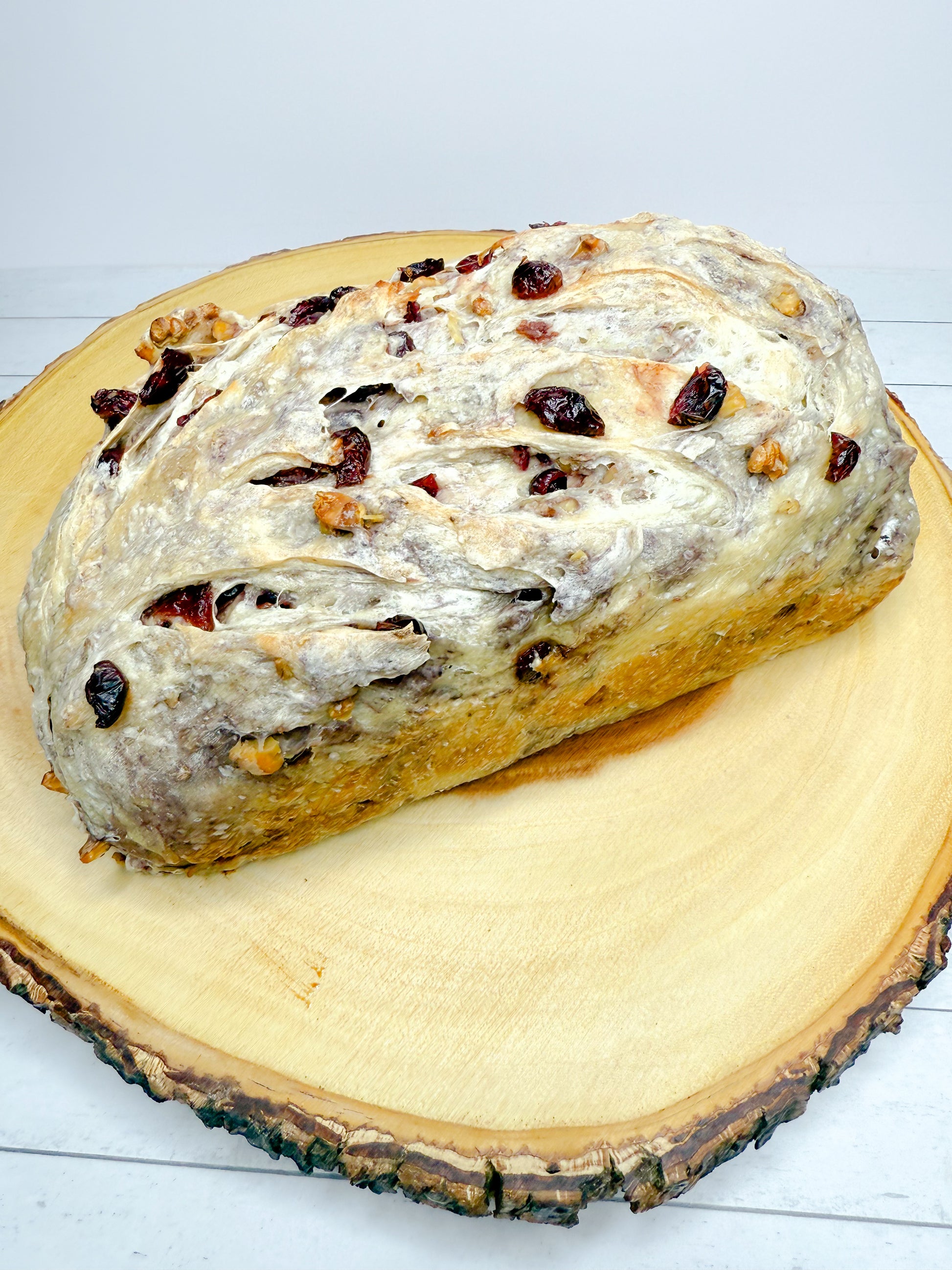 Our cranberry walnut sourdough loaf is the perfect breakfast or dessert bread! Top with jam and it just melts in your mouth.